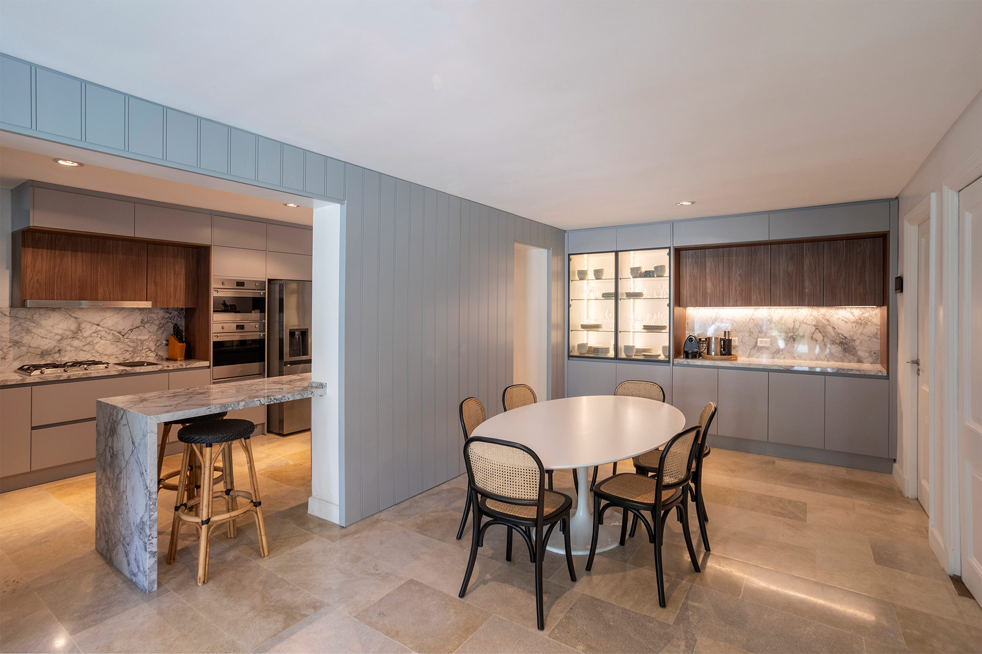 La arquitectura existente no podía ser más noble, muros de ladrillo, techos de pizarra originales, ventanas y aberturas de madera y pisos de piedra, una joya de los anos 40’s construida impecablemente de acuerdo a su época. Es decir que todas las nuevas elecciones de materiales tuvieron que estar a su altura, manteniendo el espíritu distinguido y de alta calidad.