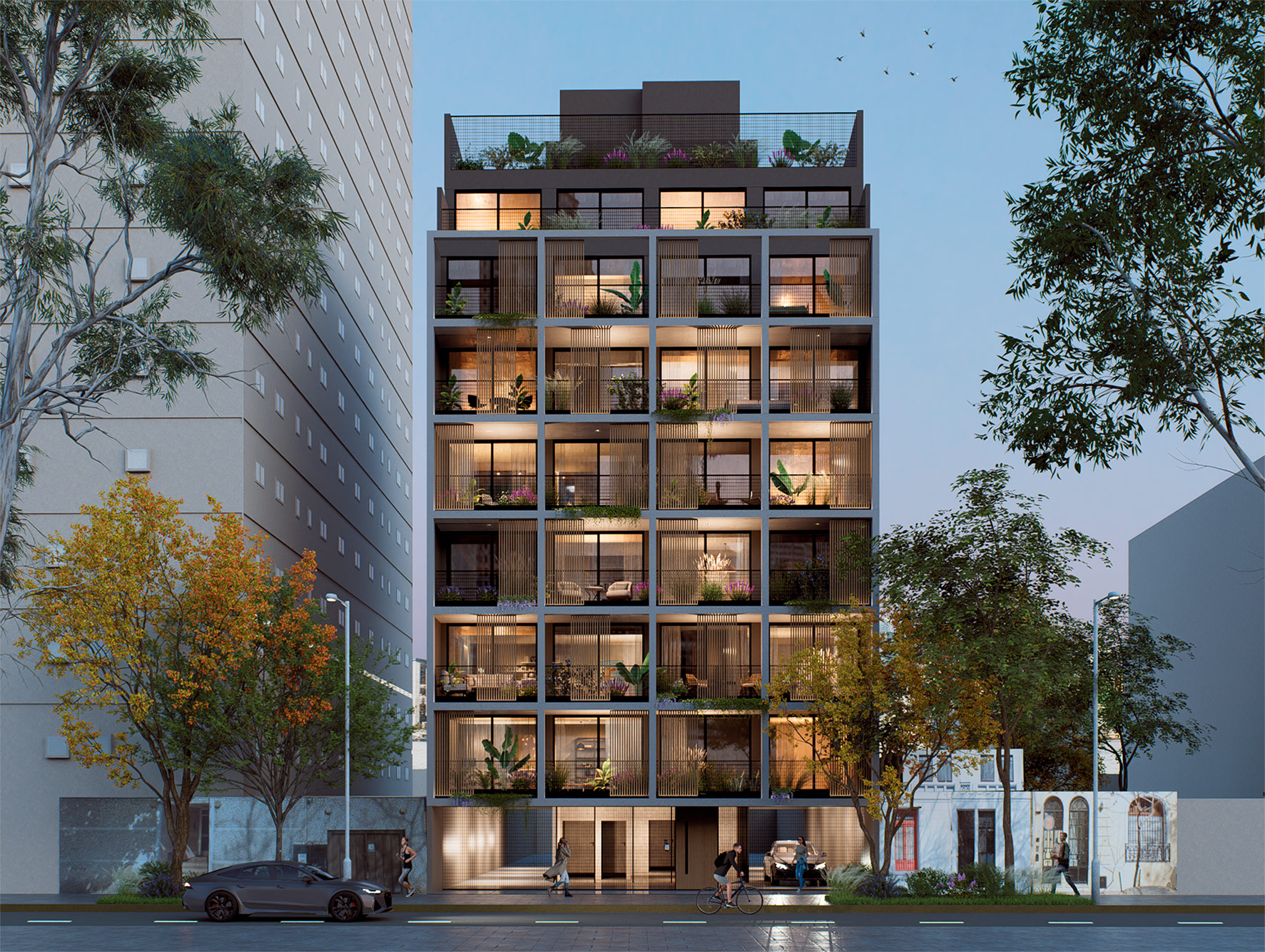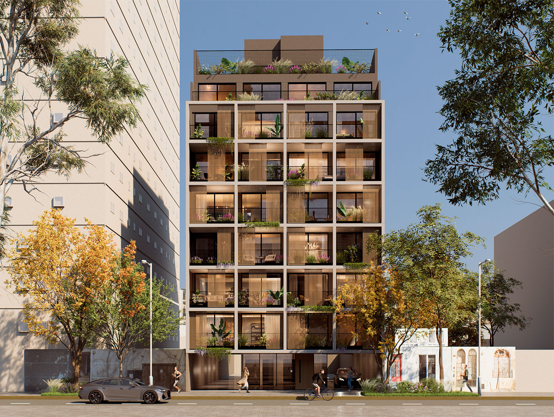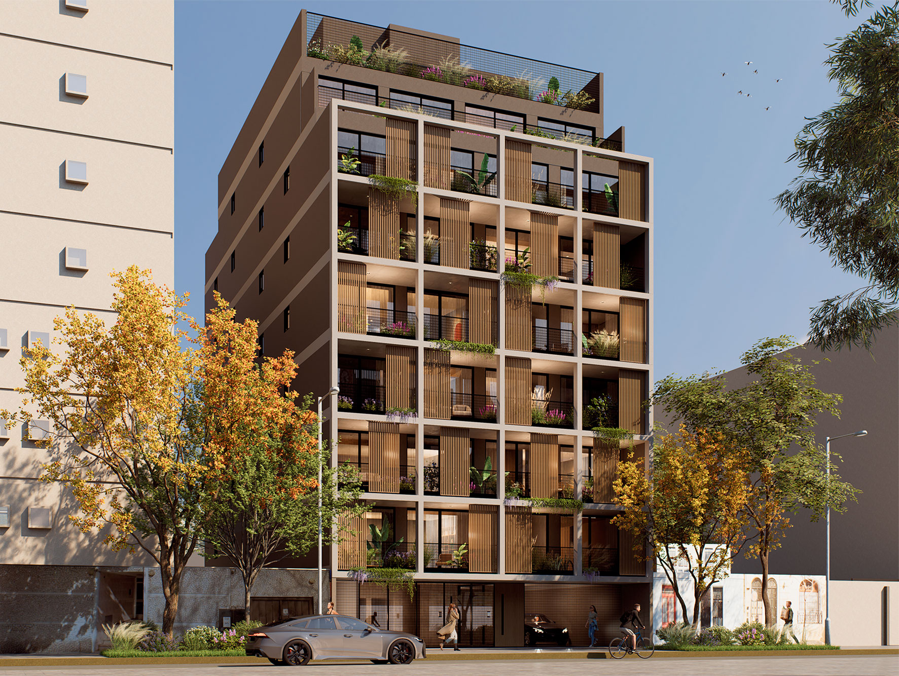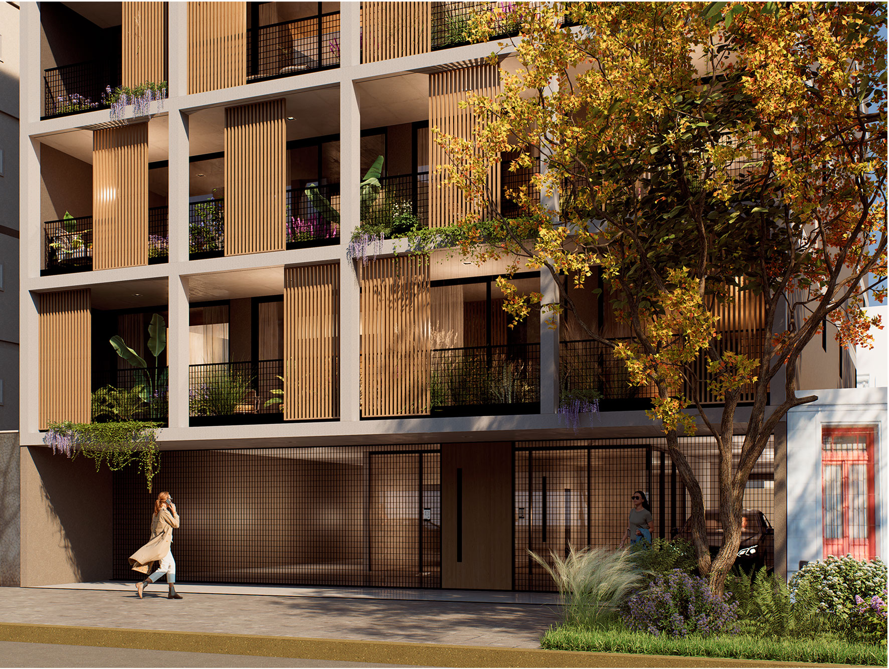 Ubicado en el corazón de Chacarita, este proyecto propone una arquitectura contemporánea que se integra con la identidad verde y creativa del barrio. El edificio cuenta con 30 unidades