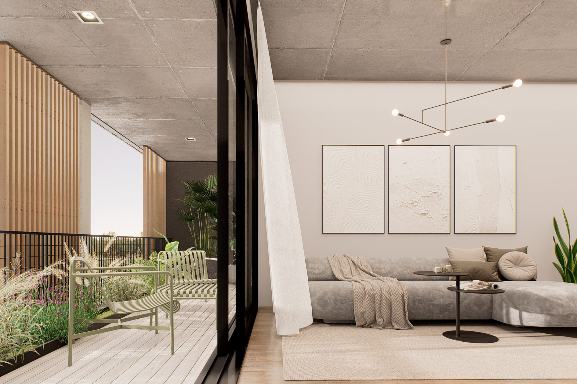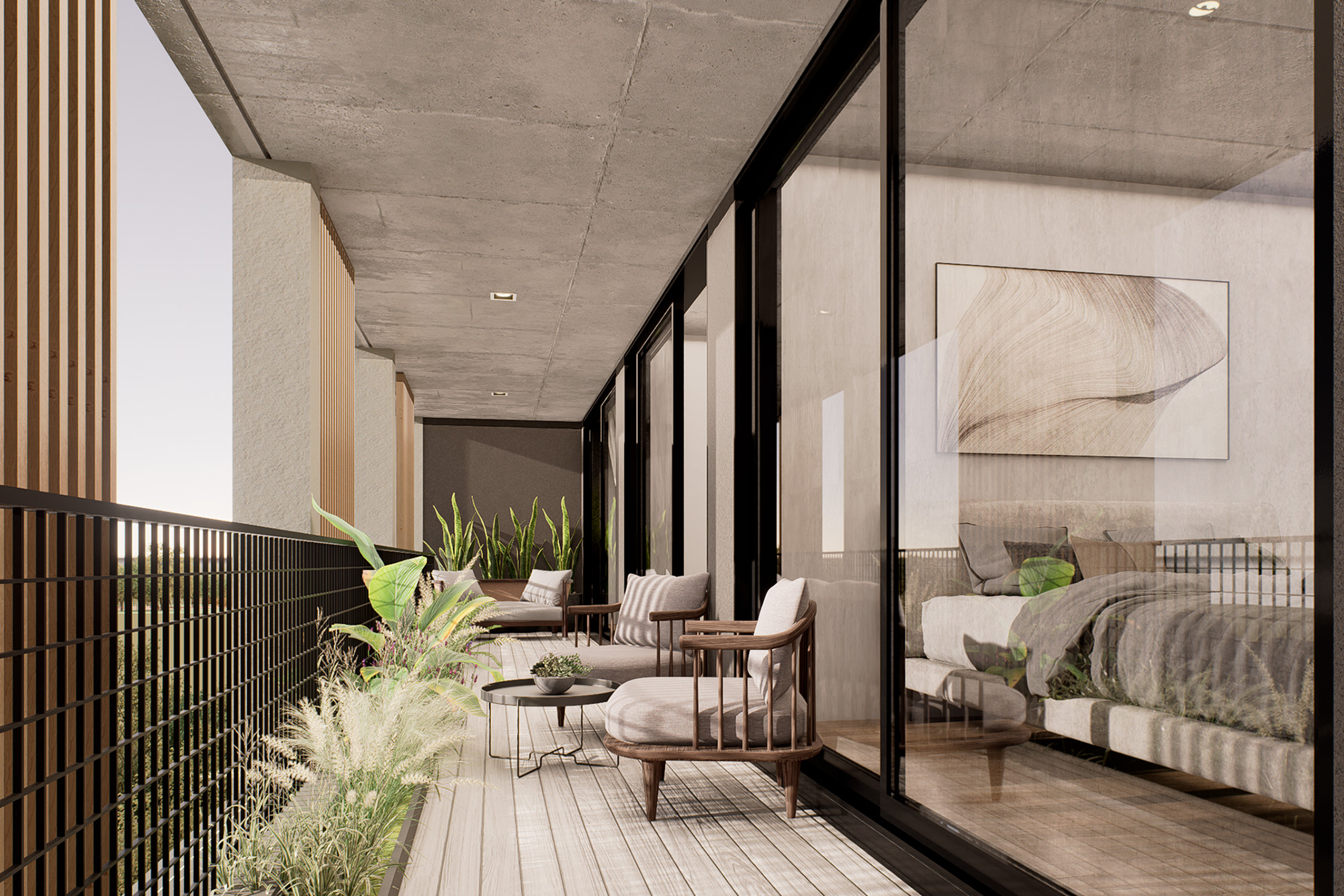 funcionales de 1, 2 y 3 ambientes, diseñadas con criterios de confort, amplitud y funcionalidad. Cada departamento se destaca por sus excelentes terrazas privadas, pensadas como una verdadera